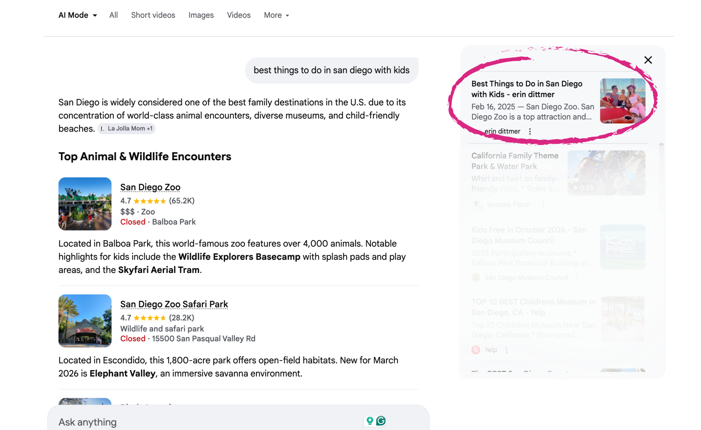 I’ll be real, I didn’t originally set out to optimize for AI search. My clients started appearing in Google AI Overviews before I was intentionally trying to make that happen. Once I noticed the pattern, I analyzed why certain pieces of content were appearing as cited sources in AI summaries and made those strategies repeatable.